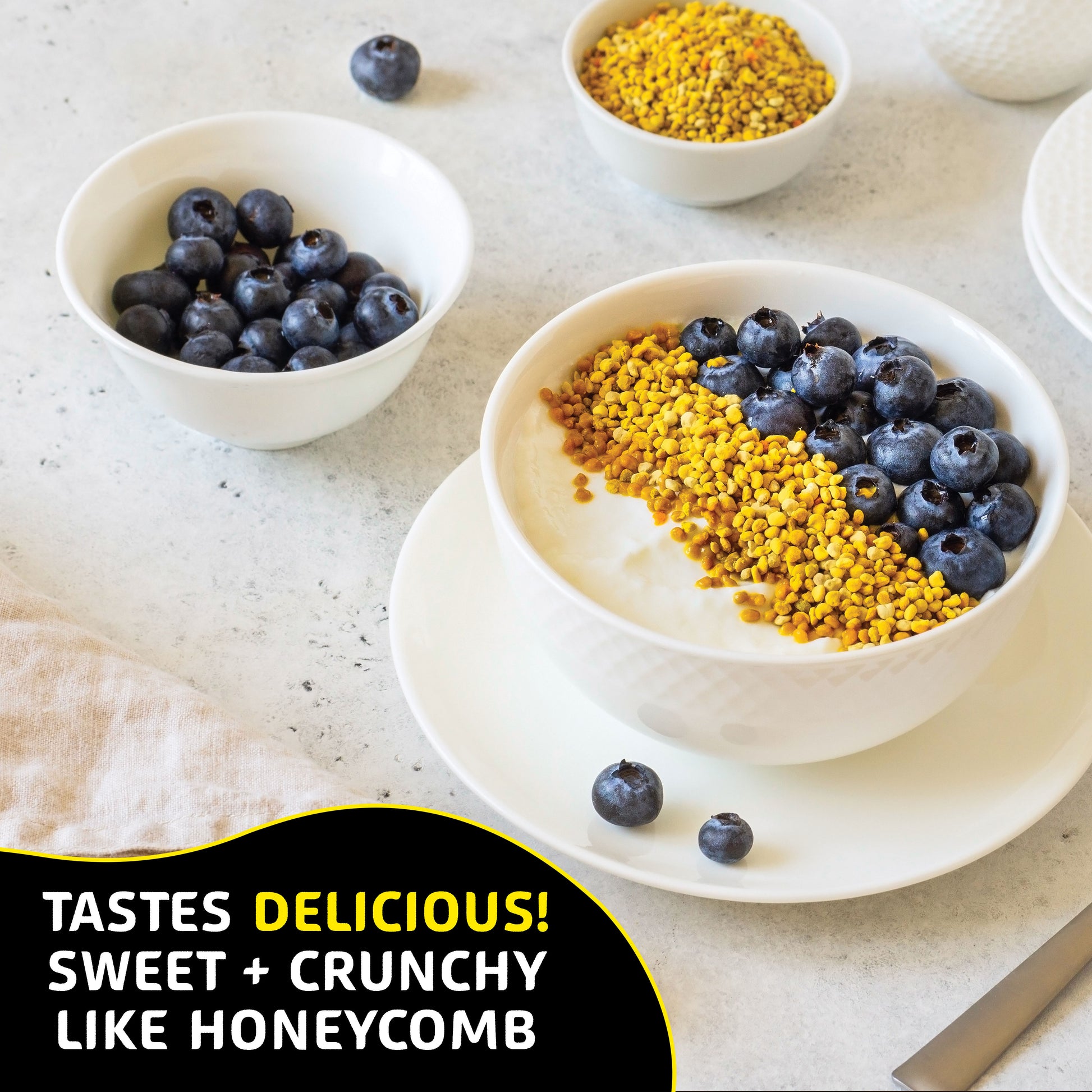 Bee pollen is slightly sweet, crunchy and delicious! Add to foods like yogurt, cereal, smoothies and salads. Bee pollen is an excellent addition to a healthy, balanced lifestyle. Take up to 1 tablespoon per day.